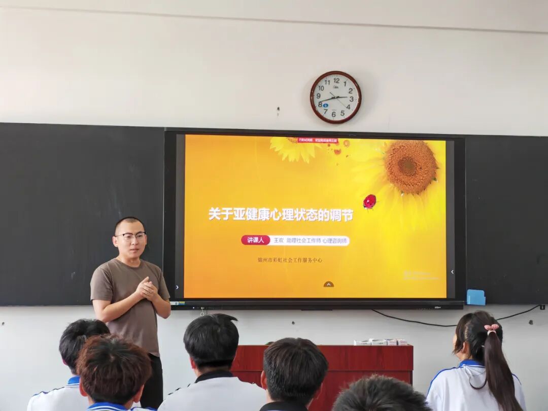 随后,锦州市彩虹社会工作服务中心的助理社会工作师、心理咨询师王欢为同学们带来了题为“关注亚健康心理状态的调节”的专题讲座。“健康的心理就像一片沃土,能够让同学们更好地成长成才。”王欢老师从青少年常见的心理问题入手,分析了学习压力、人际关系、情绪管理等带来的心理亚健康状态,并提供了实用的心理调适技巧。